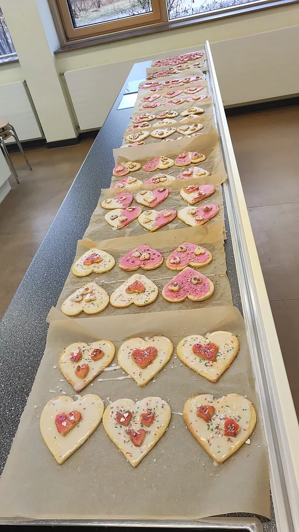 Die Projektarbeit zum Thema „Wirtschaften für einen Markt“ im Rahmen des Faches Wirtschaft und Beruf wurde für die Schülerinnen und Schüler der Klasse 8A zu einem tollen Erfolg. Gemeinsam wollten sie für die gesamte Schule süße Valentinsgrüße aus eigener Herstellung anbieten. Dafür mussten viele kleine Schritte sinnvoll geplant, Aufgaben verteilt und Zeitpläne erstellt werden. Von der Ideensammlung bezüglich passender Produkte über Einkaufslisten, Produktionsprozesse, „Verpackungsfließbandarbeit“ bis hin zu Preiskalkulation und Verkauf – alle Klassenmitglieder brachten ihre persönlichen Stärken engagiert ein, was das Projekt zu einem echten Erfolg werden ließ.
