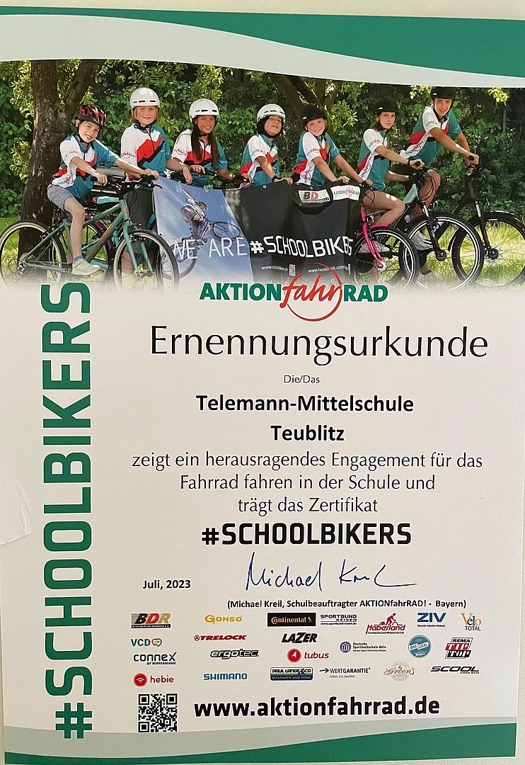 Die Telemann-Mittelschule ist eine der Stützpunktschulen für Mountainbike und offizielle #schoolbikers Schule.