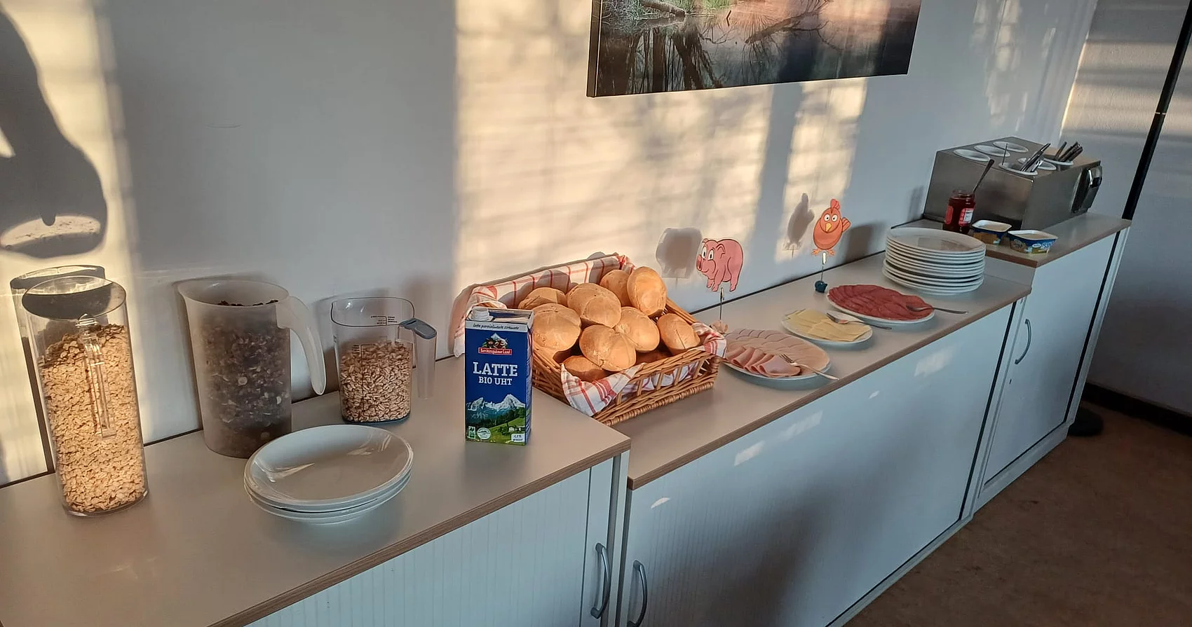 Jeden Morgen von 7:30 bis 8:00 Uhr sorgt Frau Haider als engagierte Frühstückslotsin dafür, dass rund 30 Kinder ein ausgewogenes Schulfrühstück erhalten. In einer warmen und freundlichen Atmosphäre können die Schülerinnen und Schüler gemeinsam in den Tag starten, gestärkt und bereit für den Unterricht. Das Frühstück bietet nicht nur eine wichtige Mahlzeit, sondern auch einen Raum für Begegnung und Gemeinschaft.